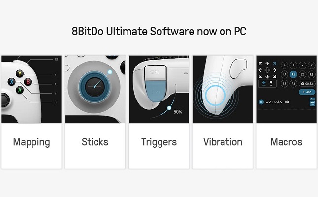 8BitDo Ultimate programmatūra tagad datorā, Android un iOS. Ultimate Software sniedz jums elitāru kontroli pār katru jūsu kontrollera daļu — tagad operētājsistēmā Android un iOS. Pielāgojiet pogu kartēšanu, pielāgojiet sviras un sprūda jutību, vibrācijas kontroli un izveidojiet makro ar jebkuru pogu kombināciju. Izveidojiet kontroliera profilus un jebkurā laikā pārslēdzieties starp tiem, izmantojot pielāgoto profila slēdzi.