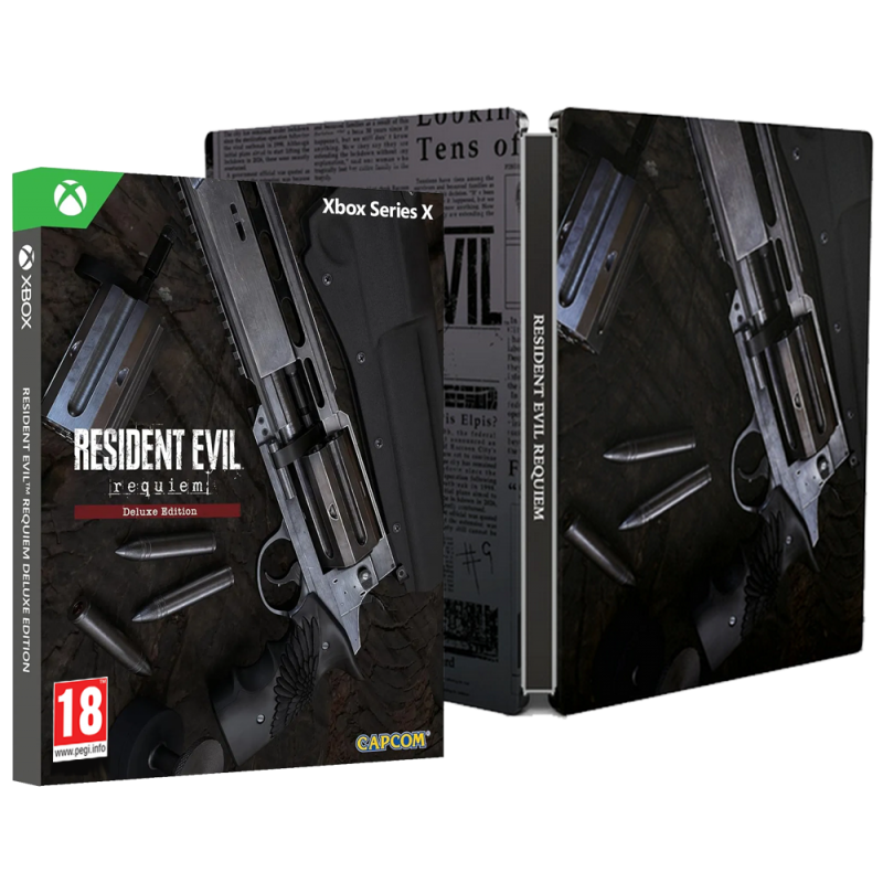 Resident Evil Requiem - Deluxe Steelbook Edition ietver pilnu spēli, metāla spēles vāciņu un ierobežota izdevuma lēcveida vāciņa apvalku. Tajā ir iekļauts arī Deluxe Edition digitālais saturs, kas ietver piecus kostīmus, četrus ieroču apvalkus, divus ekrāna filtrus, divus ieroču piekariņus, audio komplektu "Raccoon City Classic" un failu "Letters from 1998".